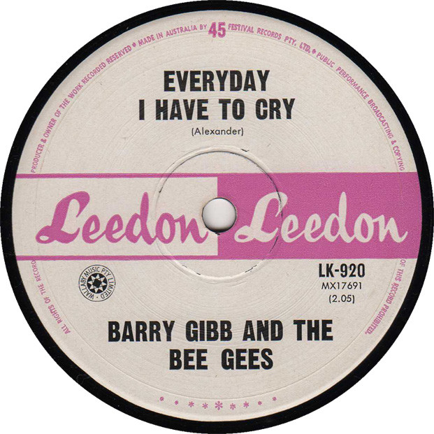 The Bee Gees released the Single Every Day I Have To Cry B/W You Wouldn't Know in April 1965. It was released through the Leedon label as catalogue number: LK-920