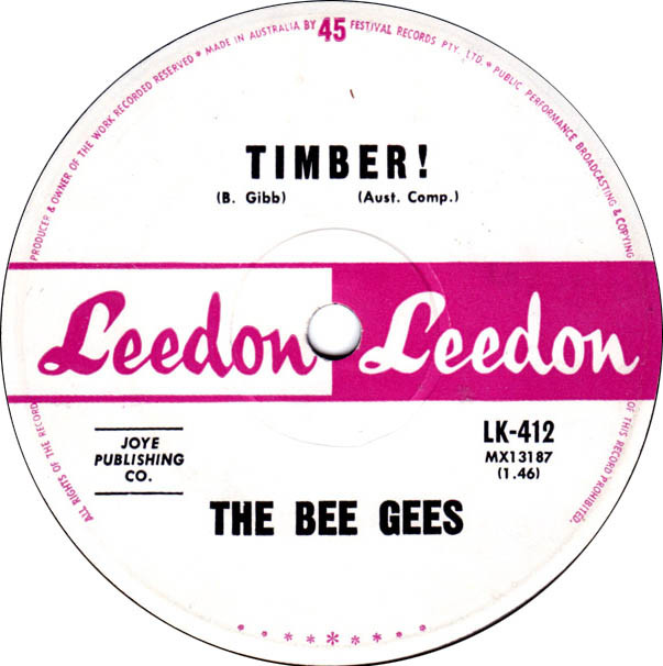 The Bee Gees released the Single Timber! B/W Take Hold Of That Star in August 1963. It was released through the Leedon label as catalogue number: LK-412